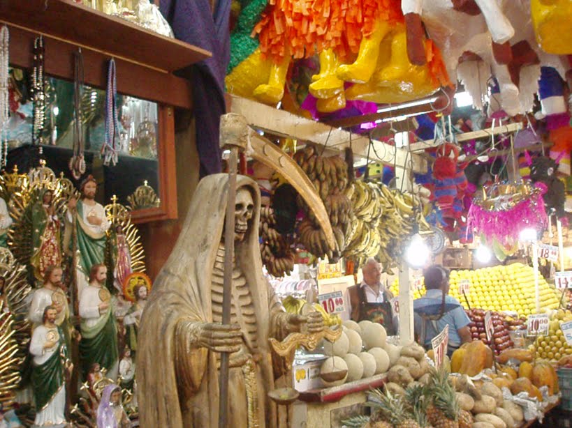 Pinatas, fruits and Santa Muerte, a nice diverse market